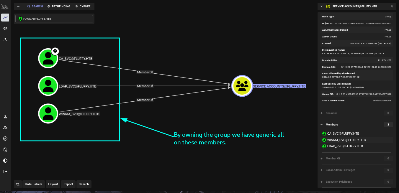 distinguishedName : CN=certificate authority service,CN=Users,DC=fluffy,DC=htb