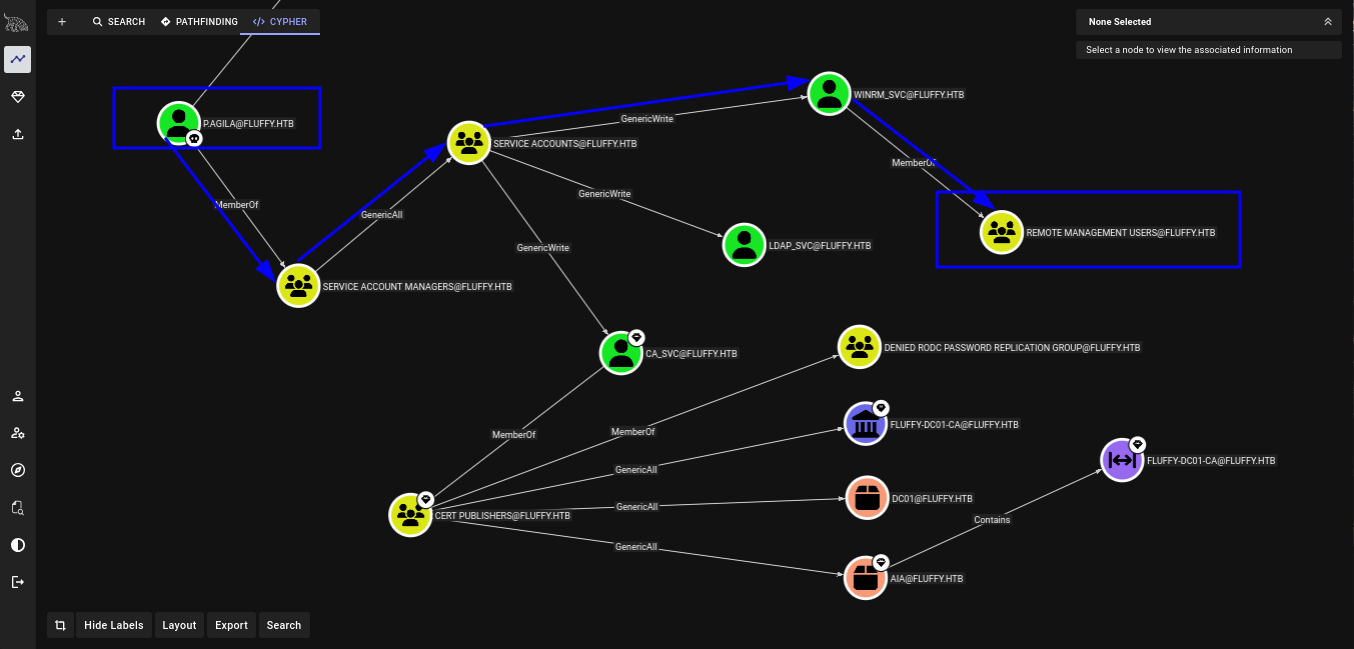 GenericWriteover the others. The ca_svc account, because it’s in Cert Publishers, is able to enroll in any certificate. we can work from winrm_svc and modify ca_svc.